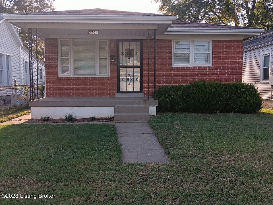 Adorable brick ranch home w/ 2 bedrooms, 1 bath, kitchen, living & dining room (962 sq ft) w/ unfinished dry basement 962 ft. Potential 3rd or 4th bedroom & bath in basement. Has a front covered porch & back concrete patio. A fenced yard & 1.5 car garage w/ automatic opener. New Bryant furnace & AC unit w/ transferable warranty. New beautiful refinished hardwood flooring throughout home. Electrical box in basement has been updated. Security doors on front & back of house along w/ security basement window bars. Garage has security door also with window bars. Kitchen & bedrooms have ceiling fans. Kitchen has pantry closet. Like new dishwasher. Walking distance of school. Gas & electric connection for stove & dryer. Upstairs bedroom closet laundry connections. New gutter guards installed.