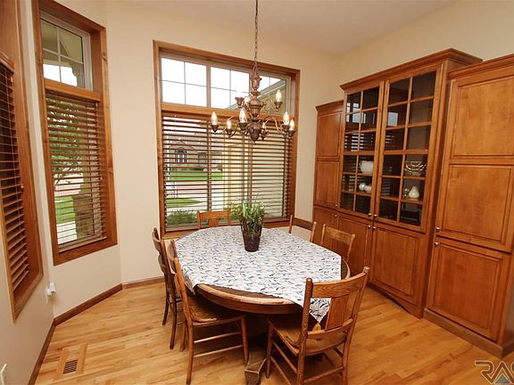 Gorgeous custom ranch is conveniently located in east-side Sioux Falls with a few minutes' drive to Dawley Farm Village, healthcare, dining and entertainment. This home is perfect for anyone who prefers main floor living with expandable space in the lower level; plus family friendly with 3 bedrooms on the main. Total of 6 beds, 4 baths, & 3,942 sq.ft. Main floor laundry. Main floor has 3' wide doors & no steps to main entry or garage entrance. Chef's kitchen with center island, hickory floor, maple cabinets, Silestone quartz countertop & double ovens. Living room has coffered 10' ceilings & gas fireplace; plus tons of natural sunlight beams through the large windows & slider to east facing deck. Custom window treatments. Master bedroom en-suite & second bedroom en-suite on the main, both with 4-season rooms. Lower level with garden windows has a family room with dry bar; great for entertaining! Plus 3 large bedrooms with walk-in closets & a full bath. Backyard is landscaped & fenced in