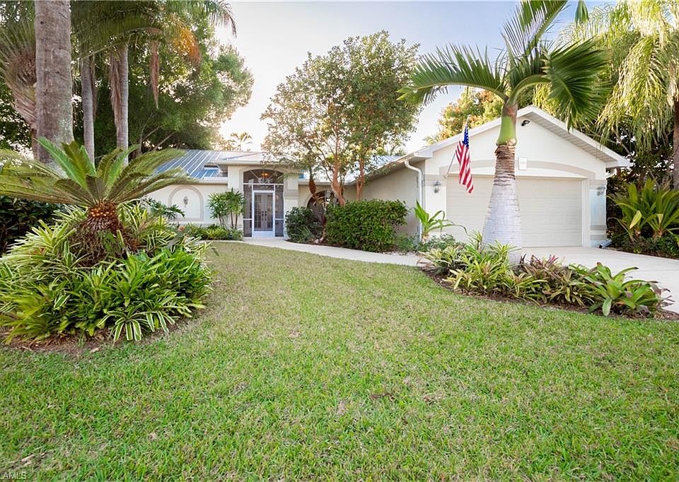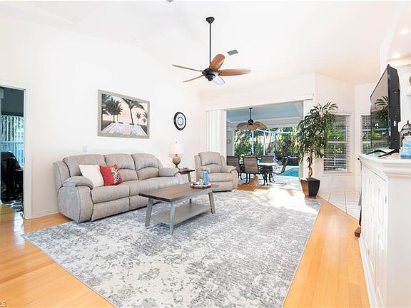 Want your very own PRIVATE OASIS? Lush, tropical landscaping, this charming and updated 3 bedroom, pool home is just what you are looking for and being sold turnkey! With views from the pool and amazing fenced in backyard from the great room and master bedroom through 8 ft sliders, you'll always have an amazing view. Walk out onto the screened in lanai and take in the tropical landscaping and waterfall that surrounds the large pool for a truly peaceful experience. There is even an outdoor pool shower! There are many different types of fruit and palm trees on the property, so you'll be able to enjoy delicious treats grown right in your backyard. This home has been meticulously cared for, with a new metal roof in 2012, the whole house was replumbed in 2014, NEW KITCHEN in 2015 (including QUARTZ countertops), new hot water heater in 2019, updated epoxy flooring in the garage, new gutters, and remodeled bathrooms. This home is located in a very desirable and quiet SE Cape Coral neighborhood. All assessments paid and no HOA!