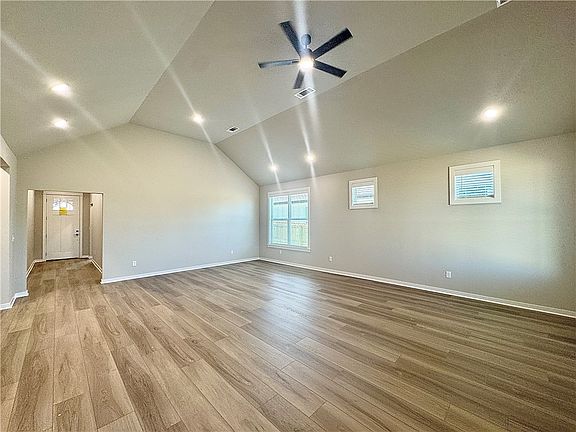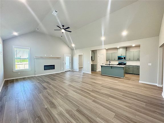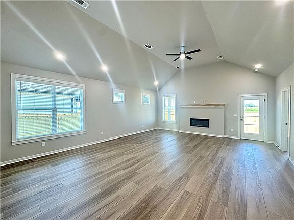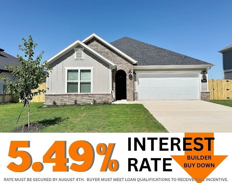 5.49% INTEREST RATE/BUILDER BUY DOWN & fence, blinds and gutters included! Discover your dream home in the new neighborhood- Jacob's Crossing. Caden plan with 1 level, garage on the right & East facing! 13 ft ceilings in the living and dining, linear electric fireplace, LVP flooring throughout the main living areas & primary bedroom, quartz countertops & more. Chef's kitchen boasting frigidaire stainless steel appliances, gas range, pantry, quartz countertops, bar pull handles, large island & gorgeous backsplash. Luxurious primary bedroom features abundant natural light, while the spa-like primary bathroom offers a walk-in shower, double sinks, tub & spacious walk-in closets. Additional features include two large secondary bedrooms & a functional laundry room. Nestled on a generous lot with covered patio that overlooks the serene sodded, fully fenced backyard, creating an exceptional living experience. Sturdy concrete siding! Model home located at 3631 Tranquility St- Lot 1.
