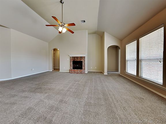 GREAT PRICE! MOVE-IN READY 4 BEDROOMS, 2 FULL BATHS IN JENKS SCHOOLS! Roof replaced May 2024. Great location with easy access to Hwy 75 and close to schools, shopping, restaurants, and more! Kitchen has ample cabinet and counter space, island and granite countertops and is open to living room with gas fireplace and views of the backyard. Primary bedroom is split from secondary and has dual sinks, garden tub, separate shower and walk-in closet. Fully fenced in backyard that backs to neighborhood park. Community has pool, pond, park and trails.
