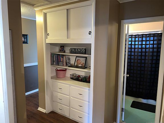 Charming 3 Bedroom 2 Bath house on a corner lot in Red Fork. Updates include master bath, carpet, wood floors, ceiling fans and newer paint. 2 sheds in backyard included. Storage and Shelving in the garage.