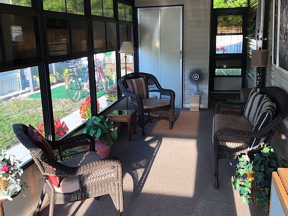 HUNTERS RUN STEAL---FULLY FURNISHED HOME IS MOVE-IN READY WITH LOW LOT RENT IN A CLOSE KNIT COMMUNITY. HOME ENTIRELY FEATURES new wood laminate flooring, upgraded sinks/faucets, vertical and mini-blinds, and lighting. THE KITCHEN has a dinette with 2 chairs, gas stove/oven, refrigerator, microwave, toaster, coffee pot, crockpot, and Foreman grill. LIVING ROOM has a sofa, two (2!) Lazyboy Rocker Recliners, an Eden Pure Heater and table. BATHROOM has a tub/shower combo, new toilet, and great space to move around. MASTER BEDROOM has a queen bed, large closets, drawers, and additional deep "cubby" space. FLORIDA ROOM has new carpet, a sofa, 2 chairs, 3 end tables, tinted windows, and an additional table stored that has 4 chairs. OUTDOORS the home has a pavered driveway, walkway, and back patio. This home has gutters, and a guarded mesh drainage system.This prevents extensive damage due to leaf and debris. Potted plants accentuate the perimeter of the home as well as rope lighting, a back yard table set, gas grill, and privacy fencing. SHED indoor measures 5 x 6, yet floor to ceiling allows for lot of built-in shelving and a work area. ON A BUDGET, OR WANTING A LOT OF FOR YOUR MONEY---THIS PROPERTY IS FOR YOU. MAKE AN OFFER: Call Agent Sherry on cell phone number for a showing or more information. HUNTERS RUN IS A 55+ LAND LEASE COMMUNITY