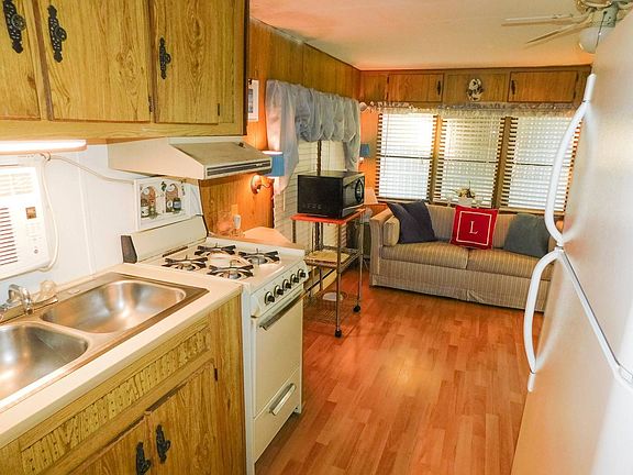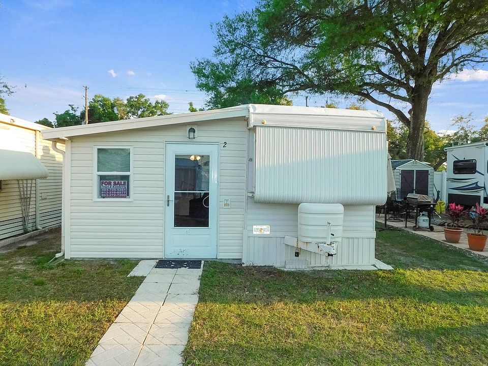 ** Exclusive Listing! Age 55+ Land Lease Community with $351.25 monthly lot rent. Contact listing agent below for ALL showings and offers.** Here is the affordable piece of Florida paradise you've been waiting for! This super cute and fully equipped 1987 converted travel trailer is priced at only $12,900, and measures 8x31 plus the 9x20 Florida room addition, for an approximate total of 420 square feet of interior living space, with one bedroom and one bathroom. It is in move-in ready, immediately available, and will be sold fully furnished, so moving day will be quick, easy, and stress free! Your new home is on a perimeter lot close to the park entrance, clubhouse and pool in the pet-free section (one indoor cat permitted) in Hunter's Run RV Estates of Zephyrhills, a fun and friendly 55+ adult community close to all the best of Central Florida. The low lot rent of $351.25 includes water, sewer, lawn trash removal, and use of park amenities. You're going to love living here, so call today and let us help you make it yours! This is a converted travel trailer home on leased land. The monthly lot rent is $351.25. The land/lot is not included with the sale.