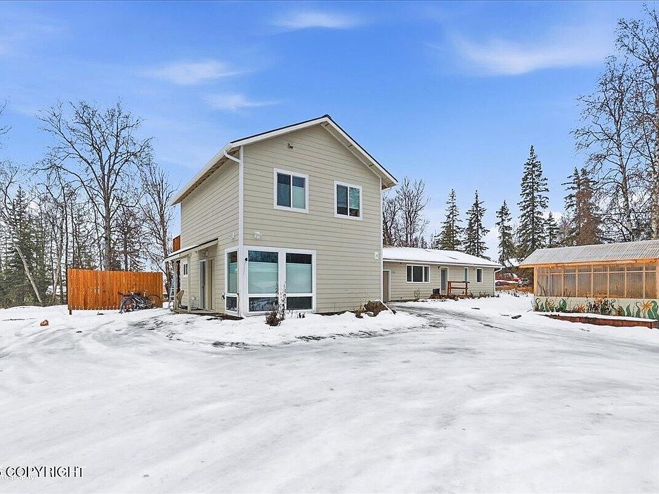 BEAUTIFULLY UPDATED HOME WITH VERSATILE 2-STORY ADDITION & RENTAL POTENTIAL. This thoughtfully expanded home offers exceptional flexibility, whether you need extra living space, a home business setup, or a future rental/MIL suite. The 2020 two-story addition features dual entry options, in-floor radiant heat, its own boiler/on-demand water heater, and a downstairs room fully plumbed and wiredfor a future kitchen, ideal for a duplex-style layout or Airbnb. Upstairs includes a spacious primary suite with a tiled shower, soaking tub, and private deck with mountain sunset views. Extensive upgrades from 2019-2025 include new septic system, circle driveway, full-house Culligan water treatment system with arsenic filtration, greenhouse, new appliances (2021-2025), and radiant heat throughout the addition. The original home received a full 2025 remodel with a brand-new kitchen (KraftMaid cabinets, quartz counters, farm sink, island), Lifeproof waterproof flooring, updated bathrooms, new trim, paint, lighting, and more. Extras include a beautiful greenhouse, RV/boat parking pad, commercial-grade washer/dryer, and a smart layout offering privacy between the main home and addition. Located between Kenai and Soldotna near Sport Lake. A truly unique and versatile property with endless possibilities.