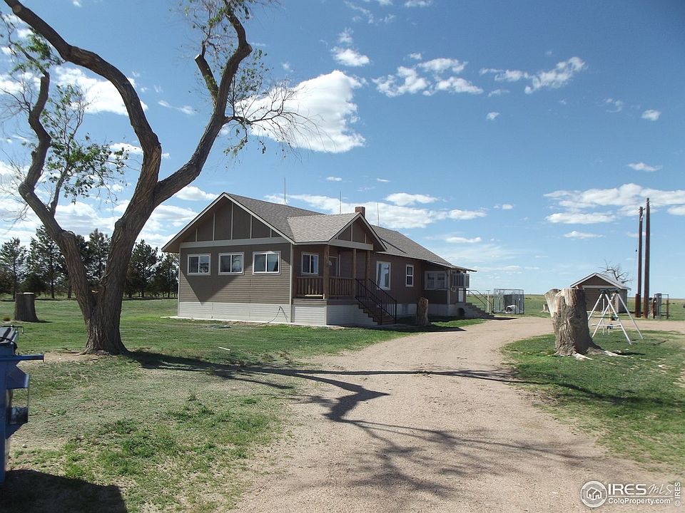Cute little house and 2 outbuildings on 3..69 acres in the desirable Briggsdale school district! House has 2 small kitchens for entertaining, an unfinished basement with 1 non-conforming bedroom and storage. Come check out this little country retreat! Schools and measurements to be verified by buyer.
