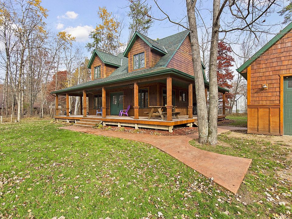 Experience lake living at this cedar sided 3 bedroom 3 bath Old Log Landing home which has an assigned dock space on Cross Lake of the famous Whitefish Chain. This stunning home is set back on a wooded lot and features Hickory hardwood floors, gas fireplace, Hickory kitchen cabinets, stainless steel appliances, vaulted ceiling, log railings, and a full finished lower level. Detached 32x24 2 stall garage provides storage. Create memories around the stamped concrete surrounded fire pit under the stars with family and friends. Sit back and relax on the porch that encompasses 3 sides of the house with a cold drink. You will love being in the Old Log Landing Association as it offers access to the Whitefish Chain, a sandy beach and a lakeside club house pavilion that you can reserve for large gatherings. You will be minutes of all the Crosslake amenities which include great restaurants, various shops, championship golf courses, and the Crosslake path ways for hiking, biking or walking.