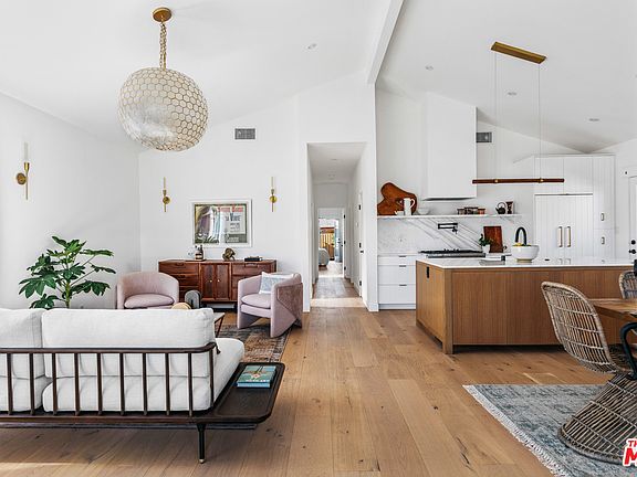 Classic charm meets modern design in this striking reimagined Craftsman bungalow. An impressive vaulted open concept room, adorned by a stunning chandelier, is only the beginning of this design love fest. The chef's kitchen showcases custom v-groove cabinetry, dramatic marble counters wrapping into a backsplash + floating shelf, integrated fridge, 36" Bertazzoni range, pot filler + oversized white oak island w/ ample storage flowing effortlessly into the DR. Hallway leads to guest BR feat. custom vanity w/ Carrara marble counter + shower/tub. Pass 2 BR to find the principal suite w/ vaulted ceilings, walk-in closet, + French doors leading to the spacious backyard. Find zen in the tadelakt clad walls of the en-suite bath w/ freestanding tub, open shower w/ bench, custom white oak dual vanity topped with calacatta marble. Work, homeschool or play in the bonus studio + finished garage feat. circuit for EV charging. Dine on the patio + enjoy the privacy of the dreamy landscaped yard!