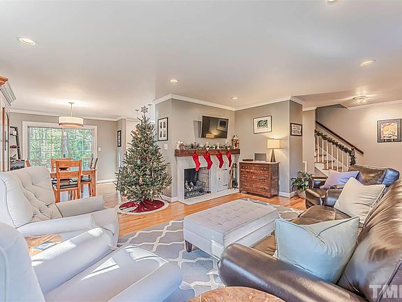 Little left untouched by this gorgeous Raleigh reno. Refin. hardwoods throughout except tiled baths. Separate living, family rooms, both w/ fireplaces. Family room has view of gorgeous yard, custom built ins, linear fireplace. Kitchen open to living & dining rooms w/ custom cabinetry & ss appliances, including gas range, beverage fridge. Additional wine fridge included. All baths updated w/ granite & tile. Feature walls in 2 rooms. Outside, huge double deck overlooks private yd. Near greenway, parks.
