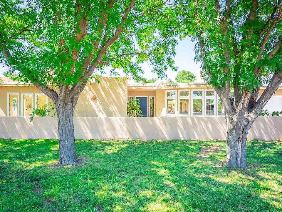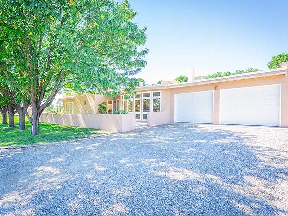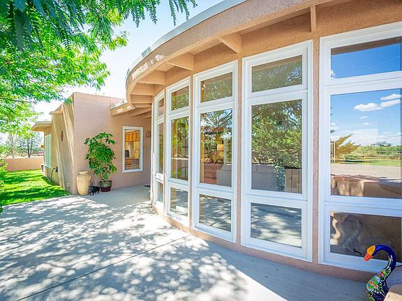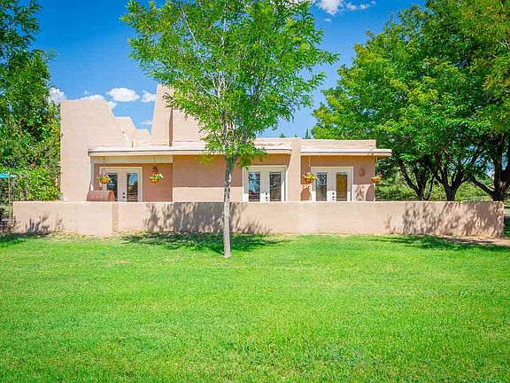 2.6 acres of land to give you just the right amount of property for social distancing along with 4 acres of Artesian water right to provide you the privacy and lush green landscape one craves here in the desert.The home has been completely renovated by the owners where needed and original features have remained to compliment the wonderful character of this Northern NM style home. Saltillo floors,4 fireplaces, and adobe bricks alongside of newly updated bathrooms, fresh paint, new stucco, and new carpet.