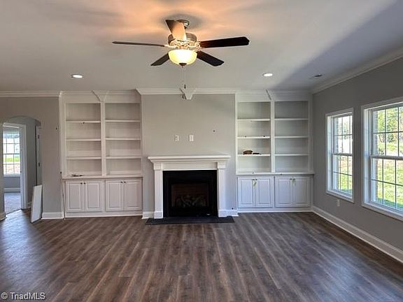 New construction! Sheffield single story twin home floor plan offers 3 bedrooms, 2 baths, dining, study/bedroom 4, crown moulding, upgraded cabinets/carpet padding/flooring. The Great room offers gas log fireplace with upgraded mantle, built-in cabinets, ceiling fan. Kitchen with "soft close cabinet drawers" under cabinet lighting, pendant lights over the island, granite countertops, stainless steel appliances with double oven electric range and vented hood, gourmet-style wall microwave. Owner's suite with ceiling fan. The owner's bath offers a 6' tile shower, frameless shower door, framed mirror over vanity, and upgraded flooring. Ceiling fan in all secondary bedrooms. And much more.