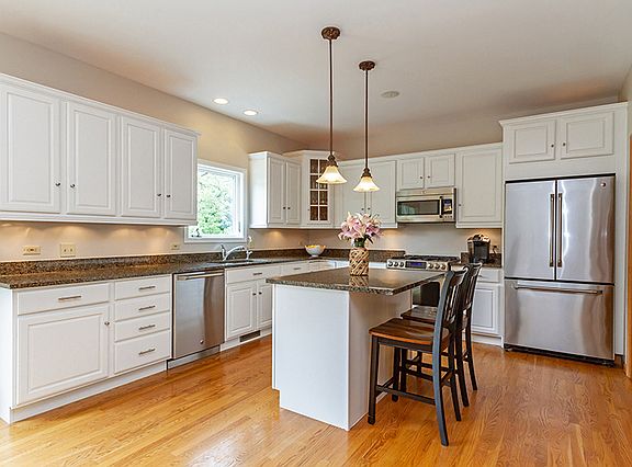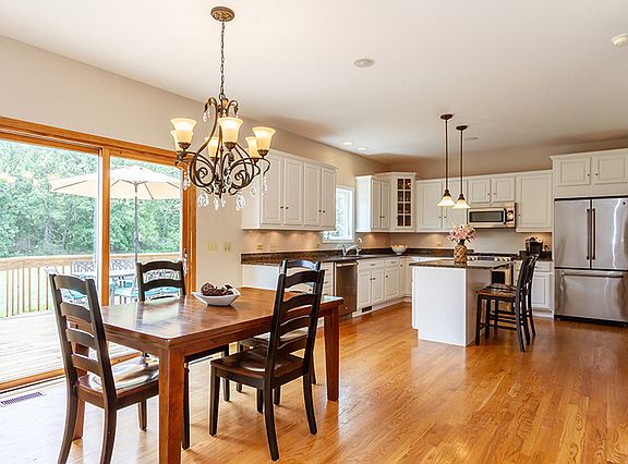 Own a piece of serenity with this gorgeous home on 1 acre with over 3,600 sq ft of living space! Spacious 5 bedroom home with soaring ceilings and windows galore to allow tons of natural light. Well appointed eat-in kitchen with updated cabinets, stainless steel appliances, reverse osmosis faucet on sink and refrigerator water, breakfast bar island, and pantry. Generous living room boasts a stone floor to ceiling fireplace. Second floor offers 4 bedrooms and full bath. Luxury master suite has coffered ceiling, his and her walk-in closets, and private bath. Finished english basement offers a spacious rec area with new carpet, a wet bar, 5th bedroom, and full bath - ideal for entertaining or in-law arrangement. Speaker system throughout the home to enjoy music, podcasts, etc! Enjoy the peaceful view of your tree-lined backyard from the deck. Updates include fresh paint throughout, tankless water heater, new washer dryer, and cleaned carpets and ductwork. Nothing left to do but move in!