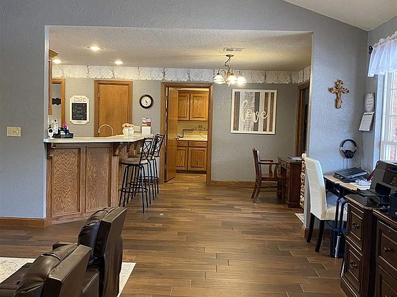 Listed by Phyllis Howell w/Bridges Realty LLC- This Move In Ready Brick Home with 4 bd 2.5 bths - 2 Living Areas - Wood Burning Stove - Great Kitchen with Lots of Cabinets and Working Space - Large Walk in Pantry - 2 Bedrooms connected by Jack & Jill Bath--1/2 Bath in Hallway - Master Suite has Tub-Walk-In-Shower and Large Closet. Double Vanities and Nice Storage. The Additional Bonus Room offers 625 SqFt of Space of Living Area. Lots of Natural Light with New French Doors Leading Out. Step Out and Enjoy your Amazing Covered Patio and Additional Entertaining Space Adjoining your Inground Pool - Surrounded by Iron Fencing for Safety. The 50X30' Shop is Complete with Concrete Flooring - Double Lift Doors - Electricity and Wood Stove - This Wonderful Home is Surrounded by 54.16 Acres-Trees Galore and Great For Hunting. Call Me Today to Take A Look. Phyllis Howell - Bridges Realty Group LLC 580-251-5160