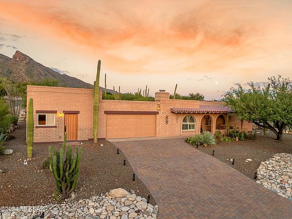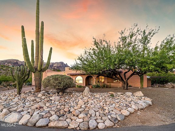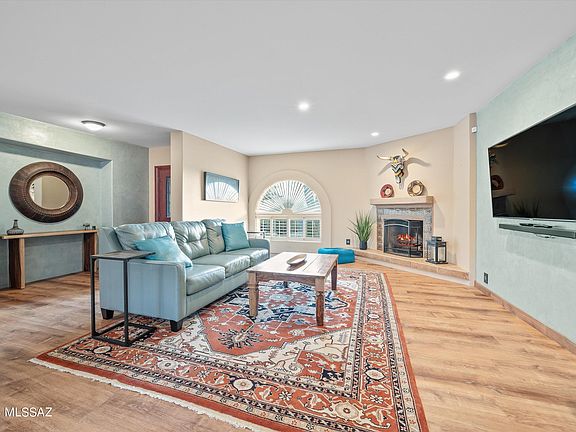 Nestled in the picturesque Foothills Clusters (located in District 16 school district!), this home has been meticulously remodeled from the studs up, exuding character & attention to detail throughout. Float in the pool while gazing at the stunning Catalina Mountains, including Finger Rock views that feel so close you'll swear you can touch them! Spacious corner lot offers almost a half-acre with an orientation that backs up to a common area, leaving you feeling like you have abounding space & privacy! Recent updates include leveling the sunken living room, Venetian plaster walls, new water heater, dual pane windows, electrical panel, plumbing & more! Additionally, the pool was replastered, the pool tile refreshed, & a new pool pump was added. Brand-new roof installed 2024. 2 primary bed -rooms, although the NW primary is more like a retreat! The bedroom is enormous with custom built-in cabinets and storage space as well as its own fireplace (propane). The bathroom provides a step-in shower and a separate claw foot tub & the walk-in closet will not disappoint! Primary suite could be multiple uses including huge family room, game/craft room, office space with it's own separate entrance or guest quarters. The possibilities are endless! What's more, there's a custom underground storage that could be a great wine cellar, workshop or hobby room. Updated kitchen with lots of storage, pull out shelves, and slow-closing doors. The Stove is accessible on both sides for fun, shared cooking experiences! The front entry is secured by a premium Titan security door. This home is ready for years of enjoyment!