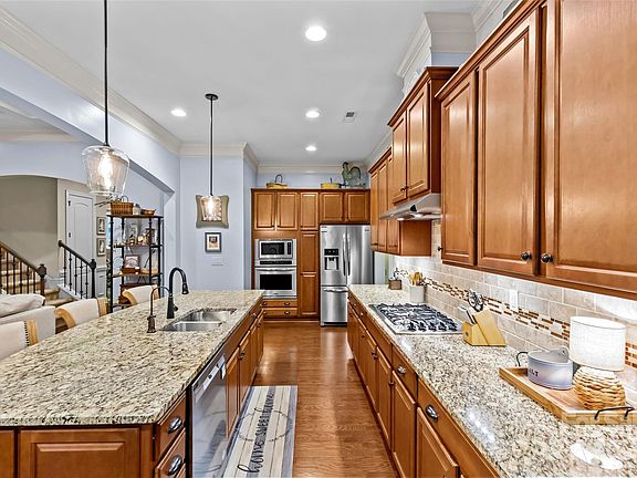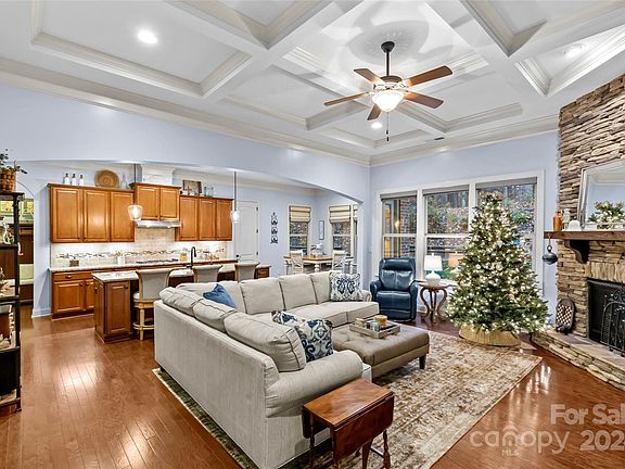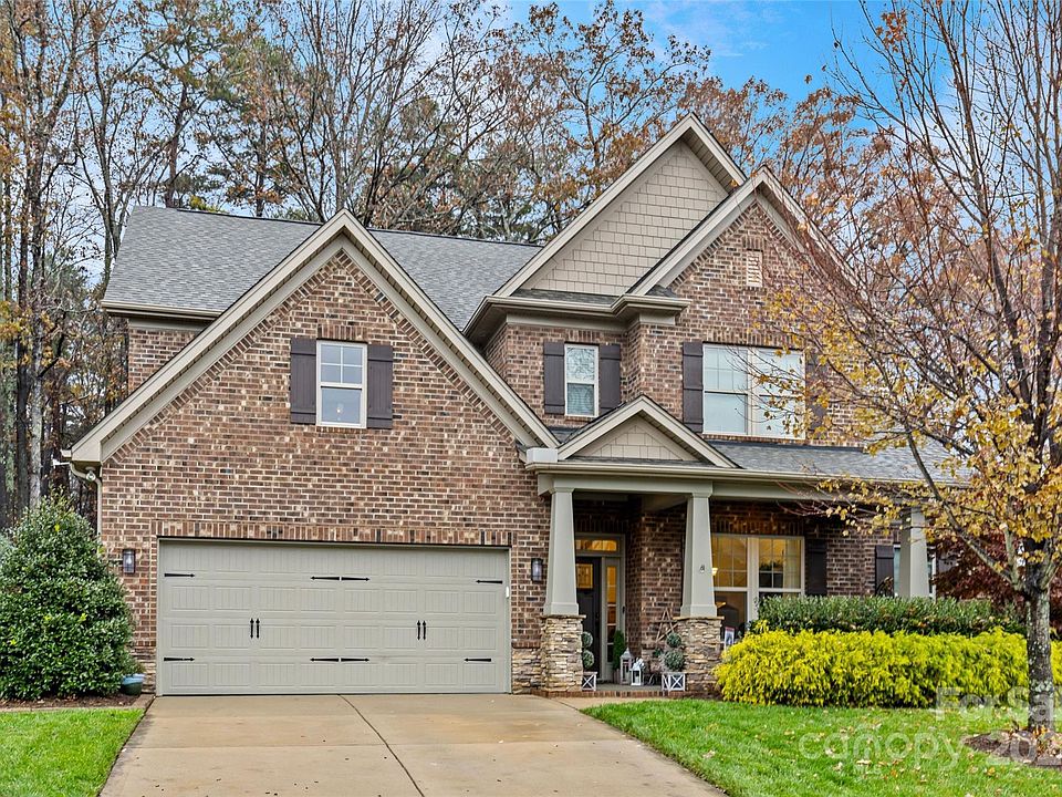Luxury, full brick, 4BR / 3.5BA in Indian Trail's Deerstyne! The beautifully designed Bonterra open floor plan is loaded with upgrades! The primary-on-main design features beautiful oak floors, 8 ft doors, and an upgraded chef's kitchen with SS Frigidaire Gallery appliance package, 5-burner gas cooktop, granite countertops, under cabinet lighting, slide-out trays in cabinets and built-in water filtration. The family room was upgraded with coffered ceilings and a stone fireplace accented with a cedar mantle. The spacious primary bedroom was built out with a bay window for additional seating and quad picture windows! The primary bath is finished with ceramic tile flooring, frameless shower and dual granite vanity w/ rectangle sinks! Upstairs, there are 3 large bedrooms with walk-in closets, 2 bathrooms and a huge 430 sq ft bonus room and additional 68 sq ft of walk-out attic. Situated on a private lot w/ a wooded area in the rear, this is a must see!