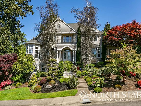 Welcome to this extraordinary home nestled in the desirable Hidden Creek neighborhood of West Linn. Offering six spacious bedrooms and 5.5 bathrooms, this residence is perfect for anyone who loves entertaining in style. From the moment you step inside, you'll be captivated by the soaring high ceilings and open-concept design that exudes elegance and comfort. A versatile office/den, finished basement, formal dining room, and cozy living room provide plenty of space to unwind or host guests. The heart of the home features a beautiful family room with a gas fireplace and a wet bar, perfect for enjoying movie nights or intimate gatherings. This property is loaded with exceptional amenities, including a bonus/rec room, home theater, and a fitness room to help you stay active without leaving the house. The master suite is a true retreat, complete with a luxurious master bath and a jetted tub for ultimate relaxation. Outdoor enthusiasts will appreciate the lush yard, balcony deck, and ample on-street parking, while practical features like a mud room, laundry room, pantry, and attached garage make everyday living easy. The home also comes with a mother-in-law unit, ideal for multi-generational living or guests. Additional highlights include central heat and A/C, a security system, double-pane windows, skylights, hardwood floors, and high-speed internet for modern convenience. A well-maintained sprinkler system ensures your lawn stays pristine year-round, while the home's charming porch offers a welcoming place to relax. Don't miss your chance to own this truly exceptional homeschedule a tour today and experience everything it has to offer! Elementary School: Sunset Middle School: Rosemont High School: West Linn This property is owner-managed. No smoking or vaping allowed. North Star requires proof of insurance of $1M (one million dollars) before move in. Sometimes Zillow populates amenities incorrectly. An approved application does not constitute a contract or lease agreement with the management company or homeowner.