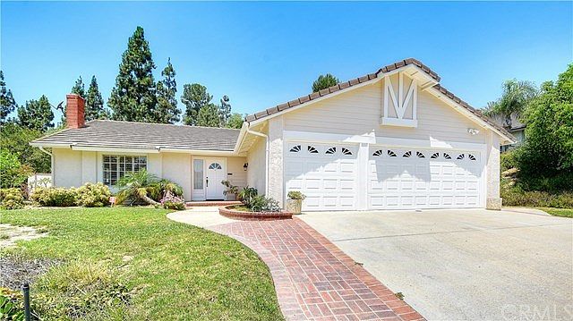 Single story living in a million dollar neighborhood for under a million! This lovingly maintained three bedroom, two bath home offers total seclusion on an expansive 14,850 sq ft lot overlooking the hills of Yorba Linda. Home features new exterior and interior paint throughout, new carpet, vaulted ceilings in formal living and dining room complete with fireplace and slider to side yard creating a perfect enclave for outdoor dining! Kitchen features a bar which opens up to bright and inviting family room, accompanied with sliding doors to private back yard with newer covered patio. A spacious master bedroom and bathroom featuring dual sinks and over sized tile shower complete this charming home, along with interior laundry room at entry from the three car garage. Plenty of room to expand current floor plan, add a pool and potential RV parking. Limitless options for this highly desirable home zoned for Yorba Linda High School and conveniently located to walking and horse trails, dining and entertainment.