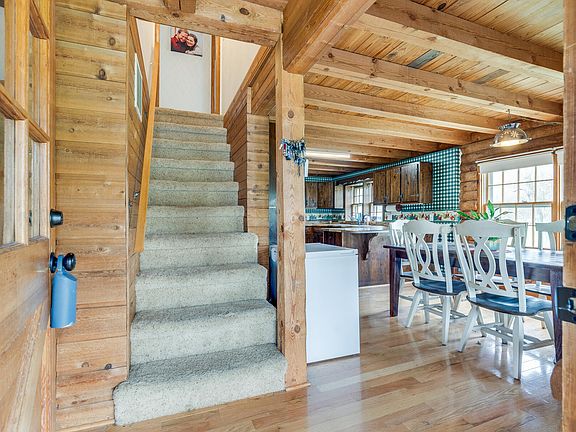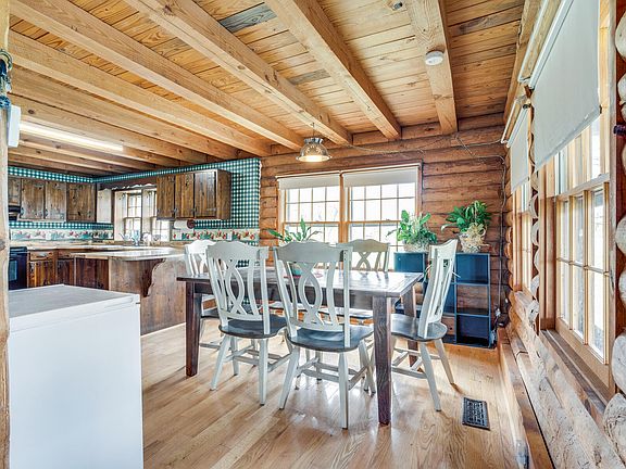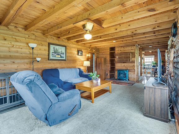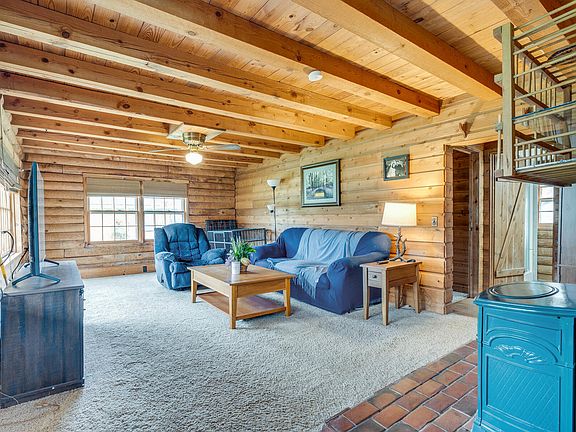 Everything you've been wanting! Mini farm with a cabin that's close to town and no city taxes. If you choose, you could live on the main level and there is a bedroom, bathroom, and laundry on the main. Upstairs hosts 3 more bedrooms and a bath. Gas logs in lieving room are a great secondary heat source. Level yard. Metal roof. Small barn with power. Newer storage building. There is also a 2 story detached garage with a workshop. You will enjoy a covered oversized front porch if the sun's hot and a nice deck in the back. There is a small creek running through the property. However, the property is not in the flood zone. Leach fields for the septic were recently completely redone. All information herein is deemed reliable but subject to buyer verification.