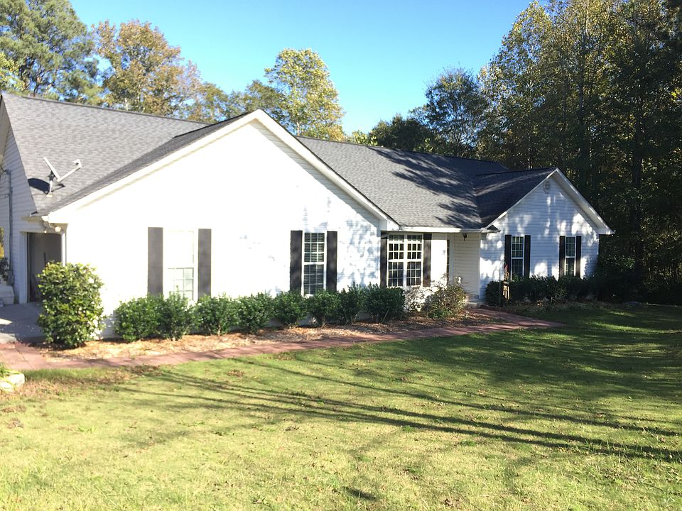 Great location with over 1.5 acres of land. Large ranch home with loads of upgrades including handicap accessible doors throughout. Lots of hardwood floors and a large family room with gorgeous fireplace, spacious kitchen and dining room. Master bedroom is huge with large master bath. Split bedroom plan with two additional bedrooms. Newer built home with no HOA, and close to everything. Home is adjacent to 3725 Hamilton Mill that is being sold and could be great investment property.