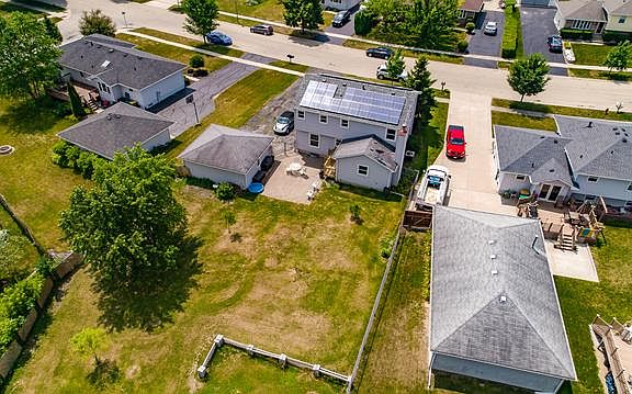 Check it out!! Spacious two story home sitting on one of the largest lots in the subdivision. This property features approximately 1/3 of an acre of land complete with perennial gardens, blackberry patch, several fruit trees, fire-pit, pond and several shade trees. This yard is fully fenced and also includes a brand new rear deck off the family room and a brick paver patio. Over-sized driveway allows for plenty of parking and leads to a 2 car detached garage. This energy efficient home features solar panels (installed in 2019) which helps you save on electric costs. New screen door and shutters also installed in 2019. Maintenance free wood laminate flooring throughout the main level. Huge living room area. Kitchen features tons of cabinet/counter space, an eating area, and is fully applianced. Wood Burning fireplace in the family room. Master bedroom has 2 large walk in closets and a private full bath with over sized tub. Many updates include brand new carpet just installed, and new tile flooring in the baths. Brand new roof and front door in 2019. Tank-less water heater installed in 2015. Furnace replaced in 2008, Central Air replaced in 2007. Every room in the home has been painted over the last few years, and some areas painted just this year. Great storage available in the full unfinished basement- can also be great living space if finished out. This home is conveniently located within minutes to I-55 Expressways, Louis Joliet Mall, and the Rock Run Forest Preserve. Nothing to do but move right in and enjoy your HUGE yard this summer!