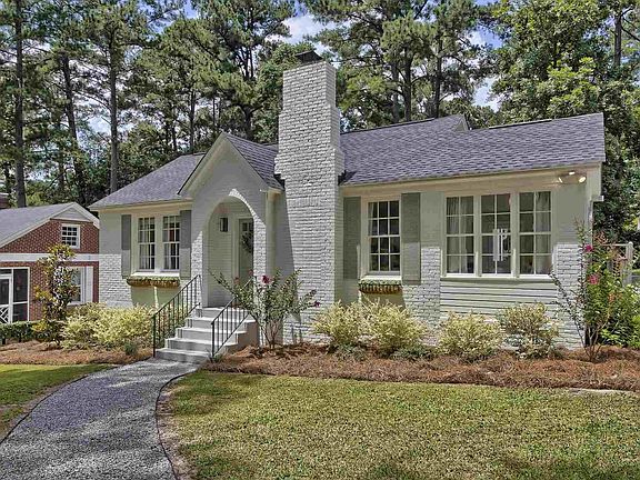 This gorgeous 3 bed 2 bath home is fully renovated with tall ceilings, an open floor plan, hardwoods throughout and adorable curb appeal on a large lot. This home floods with natural light. The living room opens into the eat in area and kitchen with a lovely sun room adjacent. The updated kitchen boasts quartz counter tops, stainless appliances and beautiful white cabinetry. The owners suite features a walk in closet, and updated private bath with walk in shower. The two spacious guest bedrooms with large closets share a full bathroom with tiled shower/tub. The fully fenced in parking area can be conveniently accessed by car from both in front of and behind the home for completely off street parking. The outdoor living areas in your private back yard are ideal for outdoor entertaining or relaxing with both a dining area and fire pit. This desirable neighborhood is minutes from Trenholm Plaza and plenty of other options for retail or dining. This is as must see opportunity!