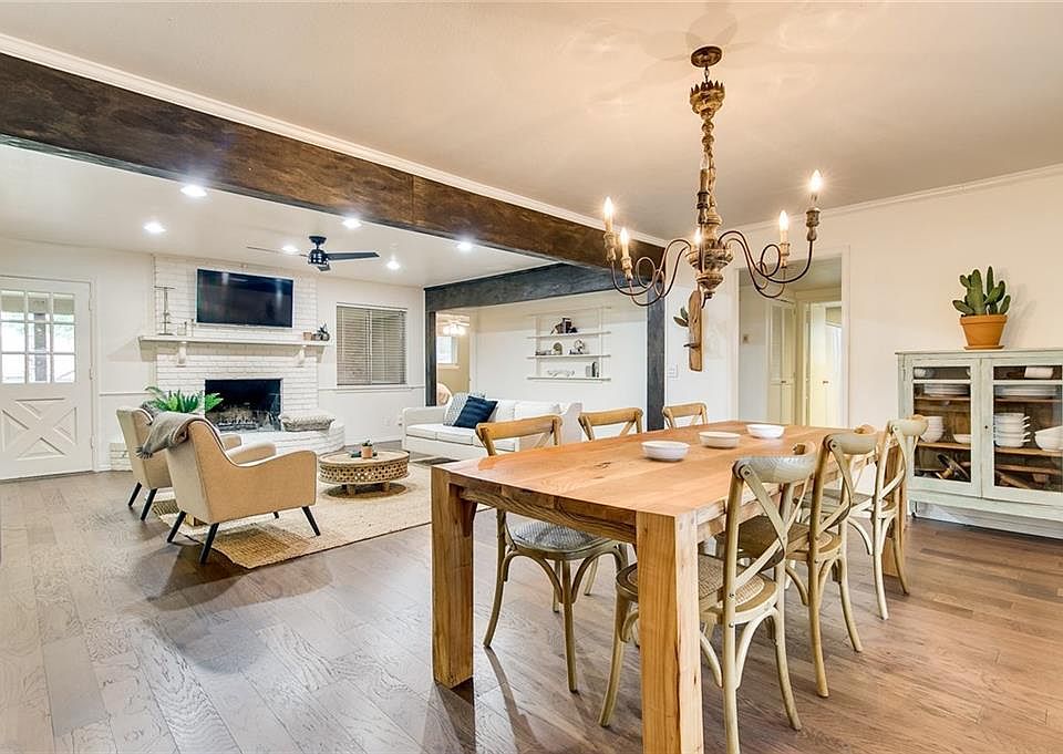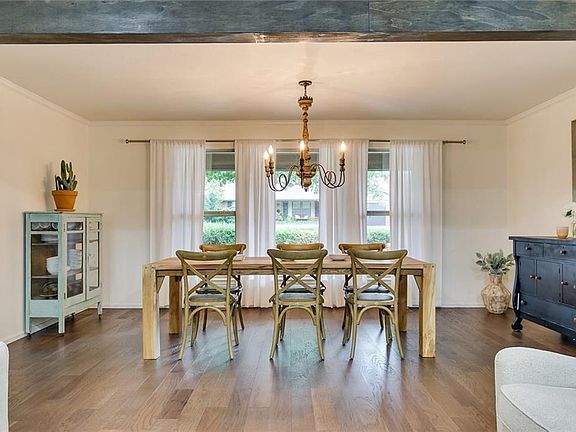 Enchanting in Edgewater! The moment you step in from the large covered front porch you will instantly fall in love with the charming cottage feel. The home seamlessly flows from one room to the next and is ideal for hosting guests. Lovely wood floors, custom lighting and wood beams accent the common areas. To the left you are greeted by the formal dining area complemented by a Magnolia chandelier. The dining opens to an airy living room and back patio entrance. The spacious kitchen boasts a dinette space and abundance of countertop and cabinet storage. Back towards the entrance, you will find the spacious master and secondary bedrooms and updated bathrooms. The covered back patio would make a great outdoor living space, and the grand backyard with shaded trees is perfect for entertaining! The home is located on a wonderful street with mature trees in Edgewater and just steps to Lake Hefner, walking trails, highways, dining, and amenities! Your new home is waiting for you!