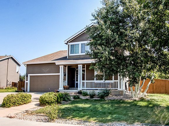 Mountain views and a beautiful park await at the front door of this beautiful 2 story home on a large corner lot in desirable Blackbird Knolls. Enjoy sunsets on the front range relaxing on your covered front porch. Vaulted great room streams light and creates an airy feeling throughout the main level of this open plan. Adjoining kitchen and dining area flow out to the large backyard deck where you can enjoy outdoor dining, a fire and step down to the private yard and raised gardening beds. Hardwood floors run throughout main level which includes a private office with built-ins and half bath. Fully finished basement adds min of $75 K in value with two flex living areas for tv/gaming, more built-ins and a workout area, or finish out the bar sink as an entertainment space or a playroom. 4th bedroom makes great guest suite with spacious bathroom and jacuzzi tub and shower. Enjoy walking nearby trails, lots of open space and Bodecker Lake 4 min away where you can paddleboard and fish.
