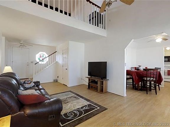 Ready for Your Family! Large 4 bed 2 bath home in Sand Springs.New paint and floors.New A/C Unit. Nice fenced back yard with covered deck.Large Living Area with vaulted ceilings and wood burning fireplace. 2 beds up and 2 beds downstairs. 2 car garage.