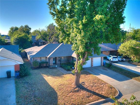 Lovely home in Mid-Del Schools, has 2 living and 2 dining with a beautifully landscaped fenced yard. Home has new carpet, newer ceramic tile in the Kitchen and entry way, has a nice brick fireplace with bookshelves. Garage floor has been freshly painted and is oversized with cabinets and a workspace. Bedrooms are large and home has lots of storage, inside utility room, has 3 bedrooms. 2 baths, 2 living, 2 dining and a 2 car garage.Formal dining and breakfast area's both have bay windows. Huge front porch and large covered patio in the back yard. Roof and HVAC was replaced during the Sellers ownership but he is unsure of exactly when? This is a wonderful home, Seller has done lots of deferred maintenance and made tons of repairs and is putting a new roof Will replace the roof with a full price offer!