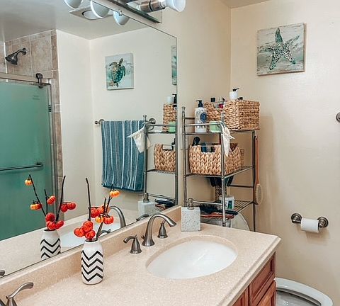The best in the building. The open kitchen seamlessly flows into an inviting living room and a versatile office space. The furnishings have been recently updated, including a brand-new kitchen. Bathroom with dual sinks for added convenience.