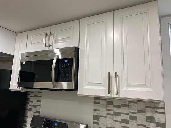 - Spacious kitchen with counter tops and trendy tile backsplash