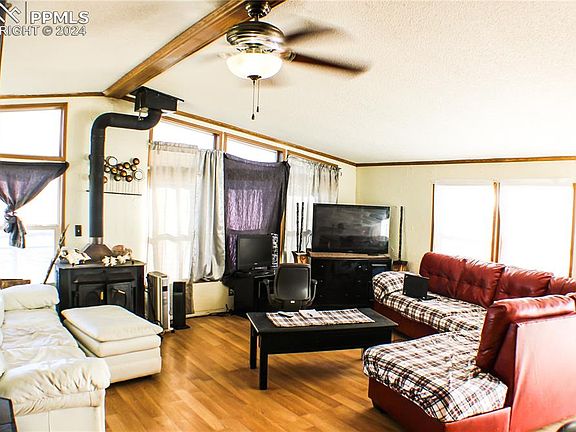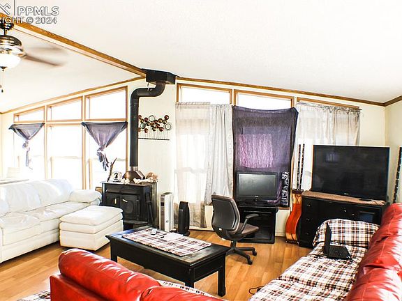 INVESTMENT OPPORTUNITY!! This open concept home sits on 72 acres of horse and cattle zoned land with unobstructed views of Pikes Peak! This great property has 7 permitted buildings to include 2 loafing sheds, 1 for horses and 1 for cattle, a huge insulated and vented workshop/shed with lots of electrical hookups, A/C Units etc. which was used for a grow. Chicken coup that hasn't been used in ages, and a utility shed. 2 permitted wells come with the property and the property could be subdivided. With an abundance of land this manufactured home features a wood burning stove, lots of natural light, laminate flooring and wall units to keep you cool in the summer. Unwind on the back deck while you soak up the peace and quiet. This property needs some TLC but is livable and is oozing with potential.