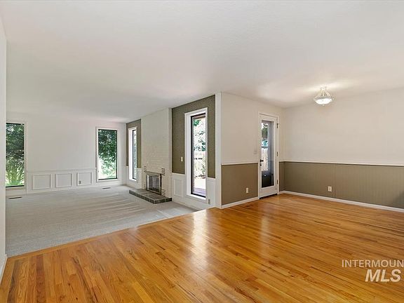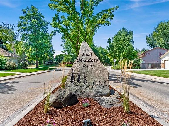 Settle in this cozy, classic home amid mature trees in the desirable, established neighborhood of East Meadow Park in South East Boise and watch the four seasons evolve. Low maintenance landscaping and refreshed flower beds welcome those looking for a home that’s moments to Bown Crossing, public schools and the Bethine Church River Trail on the south side of the Boise River. The two-car garage has space enough to meet the needs of any nature enthusiast’s equipment, too. Freshly painted walls and new carpet in the home’s living areas and two bedrooms are accented by original hardwood floors that bring both charm and warmth to the kitchen overlooking the dining and sunken living room, offering a host of possibilities for a future open-concept design. Floor-to-ceiling windows frame the wood-burning fireplace, and look over the deck to the low-maintenance patio, adjacent to the community park featuring a new playground and walking paths.