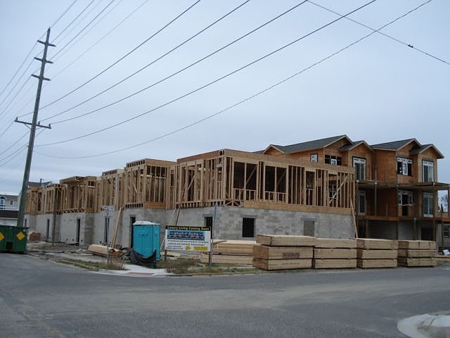 Colours By The Bay. Each unit overlooks the intercoastal waterway of Post Creek Basin. Each condo is approximately 2800 square foot of total interior living space. Ground floor has an oversized garage classified as a 2 car garage, large enough for at least 3, and a small storage closet. First floor of living space consist of an oversized living room with a gas fireplace, which has berber carpet, large kitchen with stainless appliances, hardwood floors, dining area, a large bedroom/office and a full bath. Ceiling height is 10 feet. Crown molding accents this spectacular room. The second floor offers 3 bedrooms and 2 full baths....one being the master bedroom which has a private bath, complete tile floor and tile shower. There are also sliders to the private deck overlooking the intercoastal waterway. The upgrades in these units are remarkable and something to see.