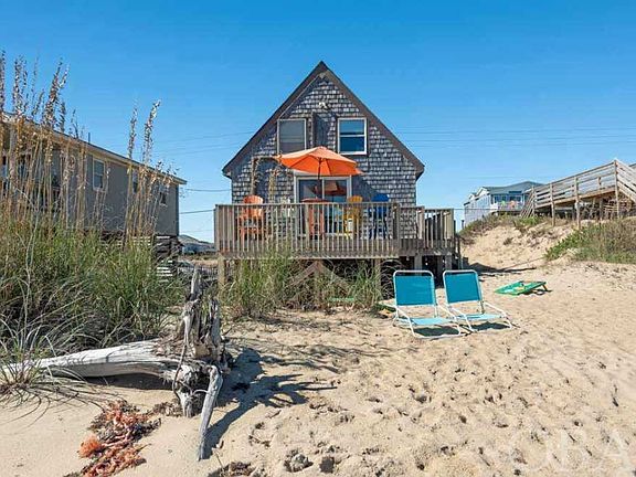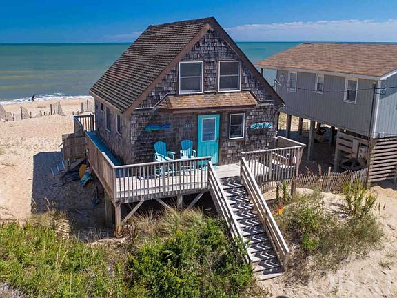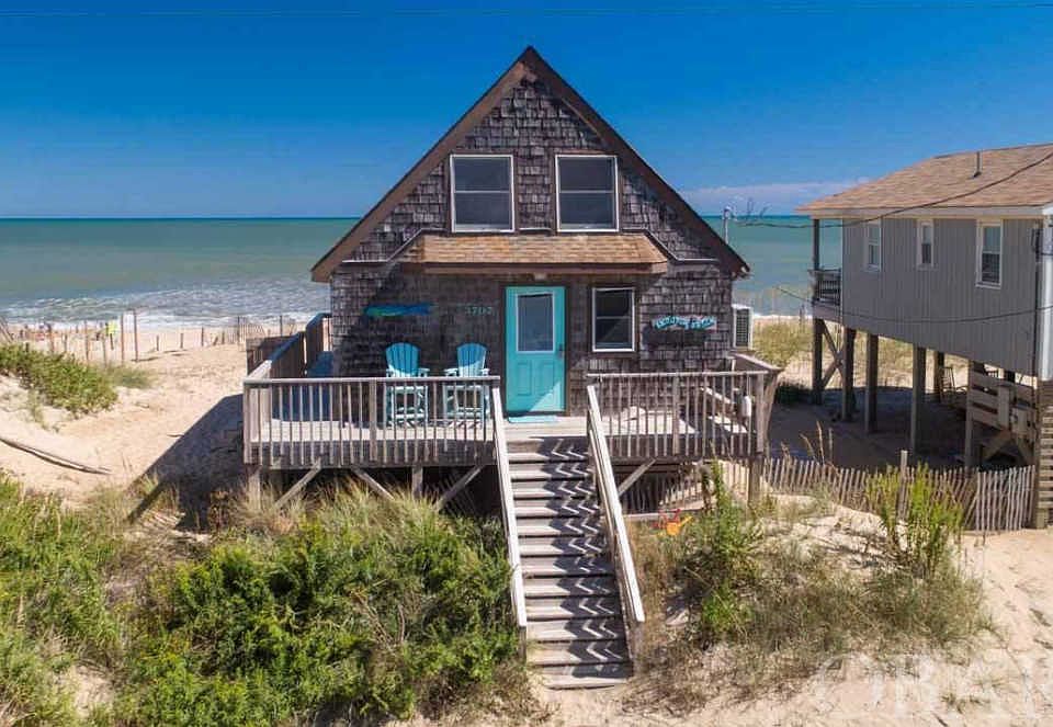Enjoy your day in the sun and toes in the sand while creating your favorite beach memories at this adorable vintage Kitty Hawk oceanfront cottage! This home comes with cool history, built as a Navy Barracks and moved to this location from VA in 1967, it is truly a classic! Nestled in the dune and right on the beach, it is ready for your next adventure. The location doesn't get any better! Wake up to the sound of the waves and step right out the the beautiful beach! Many recent updates, including a beautiful new kitchen and bath, along with the stylish and colorful fun decor make this a favorite Airbnb rental. Renting only in the off season and used for family and friends in prime summer, the income is strong, and with an open calendar can do even better. (A few comparable homes are doing $29k + in the summer months, add that to the sellers off season rental income of $29k+, this home can generate some great #'s)! This charming gem on the ocean features an open living space on first level with one full bath, then climb the genuine naval ship spiral staircase to the open loft bedroom and second bedroom and second full bath. Local, hands on owners have put a lot of love into this great Kitty Hawk oceanfront home. Be sure to put this on your must see list!