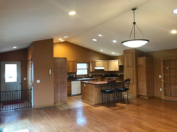 Check this out!! Open concept Kitchen with cathedral ceilings and a beautiful fireplace. French doors open into a large living room, 2 bedrooms, full bath and main floor laundry room with slider to the back deck complete the main floor. The walkout basement features a possible 3rd bedroom, 1/2 bath and a family room/rec area with a second fireplace, along with a 2 stall attached garage. Plenty of room to play or entertain on 3.5 acres plus a 40x24 pole barn. Call today.