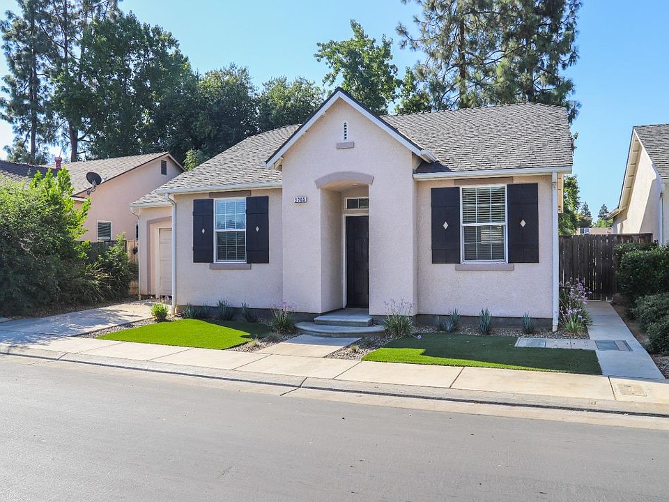 This charming charming 3 bedroom European Grove home is centrally located in between the Marketplace at El Paseo shopping center and Riverpark. This quiet gated community features green areas, picnic tables, and a turf area. The open floor plan features ktichen with eating area and living room. The kitchen features butcher block center island with double sink & dishwasher, as well as gas range and pantry. The primary bedroom is very spacious. Back yard is well manicured with a nice patio to make your own.