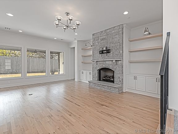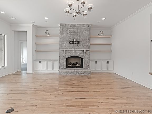 Better than new home loaded with upgrades in the sought after addition of Shadow Trails. Highly desired floor plan with 4 beds, 3 baths, 3 Car Garage. Primary + 2nd Bed + Office Downstairs. 2 Bedrooms, Large Jack and Jill Bath with separate vanities, and Game Room with closet Upstairs. Office with large closet & electric (for your printer and all the things). Light and Bright with tons of windows, natural light, and light stain on the white oak wood floors. Stainless Steel Frigidaire side by side fridge/freezer. Spacious & Airy living room with Stone to ceiling fireplace with TV mount, built in cabinets on both sides of fireplace, and built in floating shelves. Freestanding tub in primary bath. Shadow Storm dolomite countertops throughout downstairs including cooktop backsplash. Cabinets to the ceiling in the kitchen. Dry bar area next to fridge. Quartz countertops upstairs. Brand new luxe carpet. Covered patio with TV recept & gas stub for grill. Private yard backing to private land with 8' rear privacy fence. HUGE walk out decked attic space for tons of storage. Solar board roof decking, high efficiency HVAC, Low-E argon glazed windows. Wonderful neighborhood with quick access to the Creek Turnpike, fishing ponds, neighborhood pool, sidewalks, and plentiful neighborhood activities. Bixby East Elementary (accessible through the neighborhood!). Schedule your showing today! *Owner/Agent.