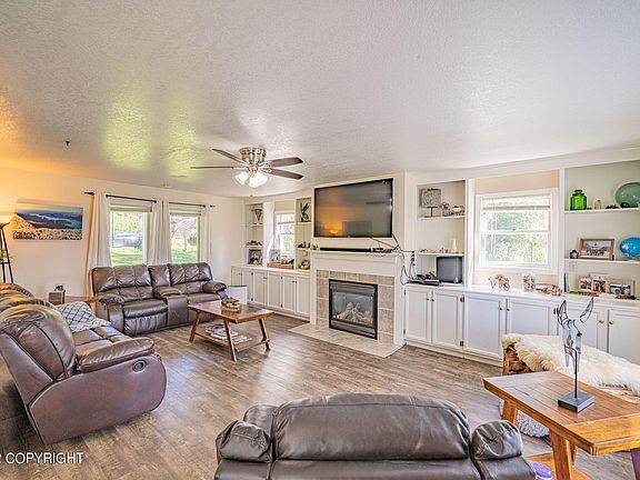 Soldotna Area 3 Bedroom Home, 2563 Sf of living, 2.5 Baths, NEW FLOORING THROUGHOUT, Great Fireplace in the Living Room, BONUS Office Area & built in, Master Bedroom on Main level, INCREDIBLE BONUS SPACE for Family Room, Home Business or Incredible Den. Home is 2 levels, with Addt' play area upstairs, TREX Decking on backdeck, and fully fenced Back Yard. Generous Driveway Parking And RV CARPORT.