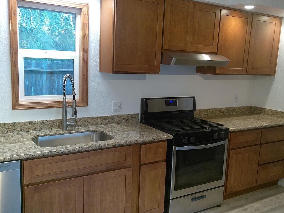 Just remodeled 2 bed 1 bath 1 car garage apt.new cabinets, granite countertops, carpet, new appliances as well as dishwasher. New washer dryer. Has small yard area.new oak closet doors will be installed before move in.Sheetrock removed and all outside walls insulated as well as insulation under subfloor to keep pg&e bills reasonable in winter time.also has dual pane windows. Owner pays water