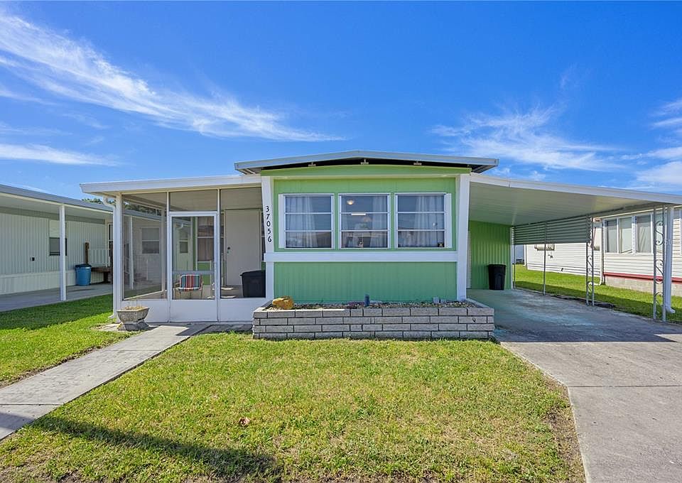Are you looking to get away from the cold, snowy north for a few months? Then come to Betmar Acres active 55+ Golf community where you OWN the land with a small annual park fee of $463. This nice, well maintained 2BR/1BA/bonus room is a perfect seasonal home. The open concept between eat-in kitchen and living room lends itself to ease of entertainment with family and friends. You enter the home from the front screen room into Florida room. This leads into the open concept living room and kitchen area. This home has many updates including bathroom remodel, kitchen countertops, and paint. The hot water tank was changed in 2018 and the furnace in 2019. Flooring installed 2021 and outside painted in 2022. The main bedroom has ceiling fan, built-in closet, and ample storge. Just outside the primary bathroom offers step-in shower, high toilet, and updated countertop for vanity. Bonus room is currently being used as third bedroom and second bedroom is used as office area. Don't forget it's near the 27 holes of golf, 2 swimming pools and 2 hot tubs along with 3 clubhouses, a library, walking paths, game rooms (Billiards, Table Tennis, Board Games) miniature golf, enclosed shuffleboard courts, tennis courts, pickle-ball courts, basketball court, Bocce courts, and Bingo. Call for your appointment today!