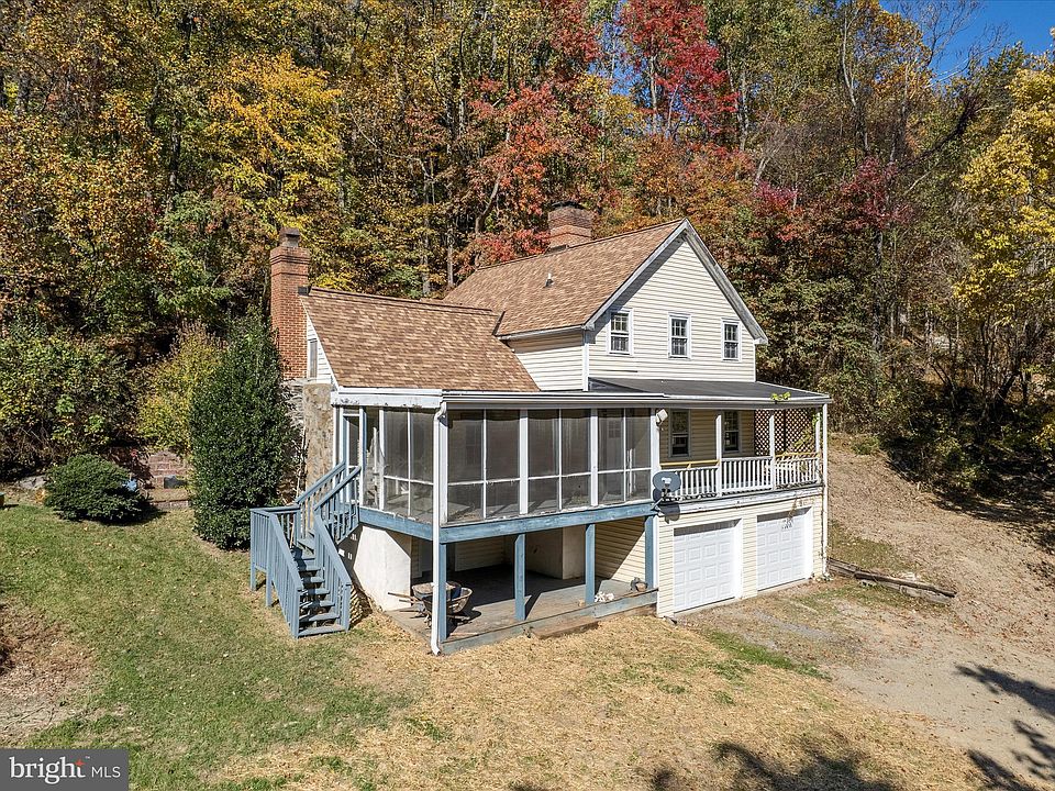 Welcome to Rose Cottage, a historic hybrid that beautifully combines a modern home with an original log cabin. This unique property invites your imagination to flourish, offering a chance to reconnect with nature and revive its former glory. With endless potential, it can serve as a family home, a tranquil getaway, or an Airbnb, all situated adjacent to the Appalachian Trail. Enter through the eat-in kitchen from the terrace, where you’ll find a vintage swimming pool nearby. There are a new stove and refrigerator in the kitchen. The main level features a spacious living room with a half bath and access to the historic log cabin portion of the home. Explore this charming main floor of the log house which also boasts an original fireplace on the ground level—just watch your head on the stairway, as it reflects the shorter heights of the past. Back in the main house, The large front porch and expansive screen porch invite quiet county evenings or convivial entertaining. Modern stairs lead to the upstairs bedrooms, including one with an ensuite bath. From the upper hallway, several stairs descend to the cozy original log house bedroom, with its charming eaves and nooks. The ground level includes a two-car garage and a small room with an attached full bath. Behind the house, you’ll find the remains of the old milk shed, and if you continue up the hill, you can take a stroll along the Appalachian Trail or discover a natural spring hidden in the woods.