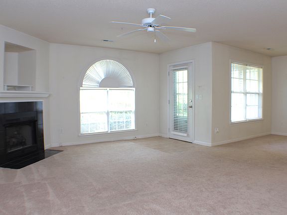 Huge open living area with cozy fireplace and lots of natural sunlight. White kitchen opens to living room. Vaulted ceilings, balcony, and built-ins. Nice size master with walk in closet and huge shower w/seat