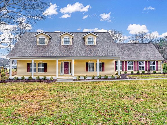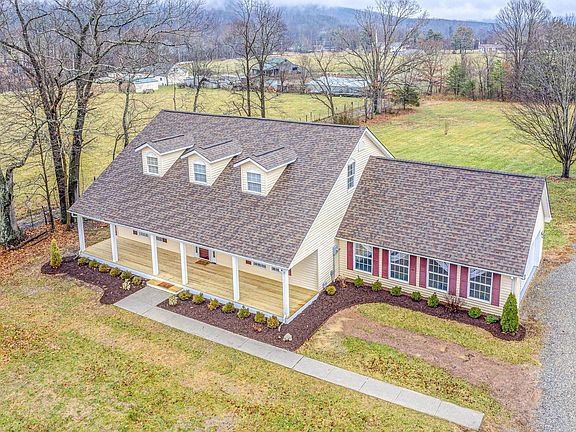 Beautiful cape cod situated on 3.3 LEVEL acres with views of the surrounding mountains. Peaceful setting off of Bradshaw Rd (not facing or near the road) offers serenity & privacy. Outside has plenty of appeal and the renovated interior is much more than meets the eye! Features include vaulted ceilings in great room, wood laminate & tile floors on main level, gourmet kitchen with new cabinets, granite countertops, marble backsplash, large island, gas range with pot filler & farmhouse sink. There are 2 main level bedrooms, one with adjacent walk-in closet that would be ideal nursery, dressing room or office. Huge country front porch is the perfect spot for relaxing and enjoying nature. Rear porch & an oversized sunroom that has so many possibilities and offers additional living space.