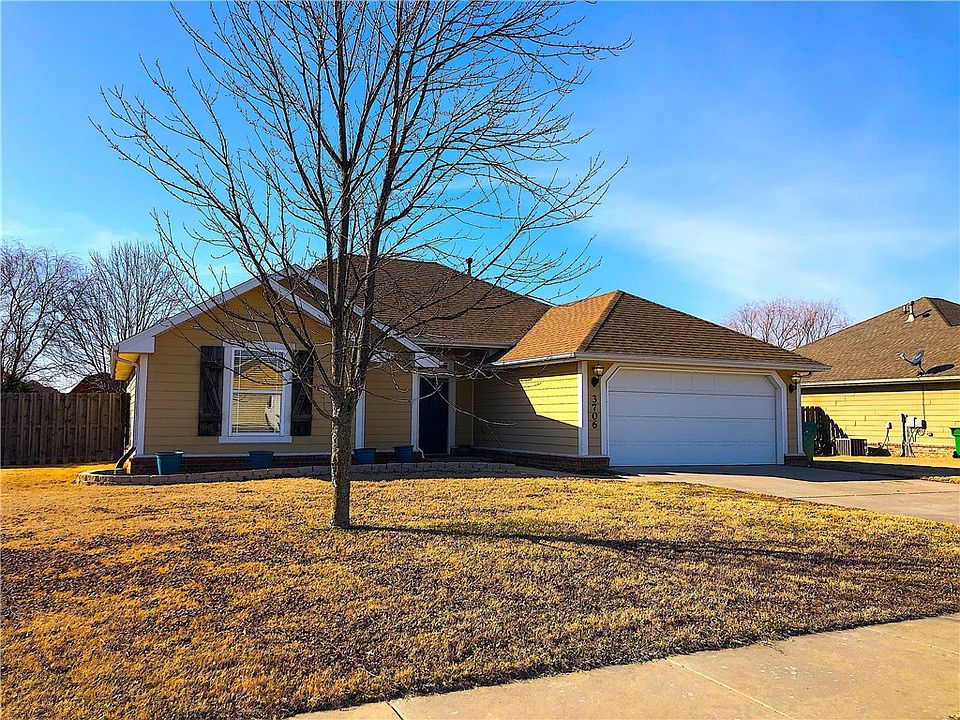 Adorable move-in ready 3 bedroom, 2 bath home available in east Springdale. Tricked out in 2022 with all this newness: a roof, beautiful heavy-duty laminate waterproof wood floors in living room, bedrooms and hall, an electric Samsung range that is both convection and air fry, and a new dishwasher. Wow, all the big stuff! In ‘23, came a new microwave. Sellers are leaving the refrigerator for the new owner! Primary bath has dual closets and sinks. Pretty new vanity in hall bath. Split floor plan, laundry room with built-in storage and rod, and a snuggly gas log fireplace to warm up with. Privacy-fenced backyard with a small, raised bed. Covered patio with fan and sun shade. Near George Park and walking distance to 3 schools. Only a 5.5 mile straight shot to I-49. This home can close quickly. And it is so move-in ready you can literally bring in your stuff and just live.