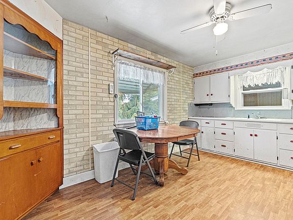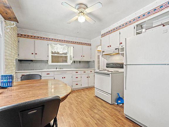 Adorable Cape Cod style home with mudroom style breezeway connecting the 2 car garage to the home. Original hardwood floors in nice sized living room and 2 bedrooms on main level. Full bath tub/shower combo on the main level. Walk up the wooden staircase to the large upstairs bedroom with lots of storage! Eat-in Kitchen is quaint with adorable built-in corner cabinet and very functional work flow with easy access to breezeway and basement. Downstairs you will find a dry spacious basement for laundry and storage and a finished area that can be used to make your dreams come true! Double pane vinyl tilt-in windows for easy cleaning, 40 gallon water heater, Gas furnace and a/c believed to have approx age of 10 years. Location is also a plus with being at the end of a dead end street! Plenty of room for visitors to park or activity area.
