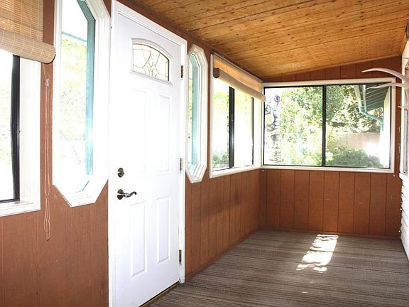 Hidden gem! The interior of this spacious home is deceptive from the street view. Loads of room and light in the spacious living area this home. Vaulted wood ceiling with a wall of windows to look into the private, treed rear yard. Kitchen remodel and addition were done in 1986. Lots of oak cabinetry, counter space and storage in the large kitchen with island. Original living room is adjacent to master suite and has a door adjoining. Makes an excellent in-law suite within the home. This home has lots of nice features including an enclosed front porch, storage areas, sewing room off utility room. The yard is beautiful and low maintenance front yard and inviting patio and deck in rear yard with Mt. Elden view. Alley access to rear yard. Vacant and ez to show.