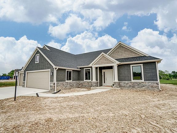 Bob Buescher Homes presents an elegant single story ranch home in NWAC schools! The home is staged and available to purchase. Located in the tranquil community of Sage Pointe, just off of Tonkel and Crawford Rd, this open concept floor plan provides an abundance of open space to relax, entertain, & create long lasting memories. The great-room is open to the kitchen and displays an attractive cathedral ceiling, elegant fireplace, and captivating large pane windows which provide an abundance of natural light & water views. The open kitchen features an oversized 7X5 island facing the water, quartz counter-tops, custom cabinets, and an oversized walk-in pantry. The master bedroom is privately tucked away and provides two separate walk-in closets, and a spa like master bathroom with a walk-in tiled shower, dual vanities, & private water room. The laundry room is located close to the master bedroom and provides ample counter space. Bedrooms 2 & 3 are located on the opposite side of the home and are plentiful in size. This home provides an office/Den just off the foyer. Outside of the home you will enjoy the covered porch & beautiful water view, the perfect space to enjoy summer days and cool summer nights! There is also plenty of space in the oversized 805 sq ft 3 car garage. With easy access to I69, Parkview North, and an array of restaurants and shopping, this home's open concept layout has much to offer on a gorgeous water lot!