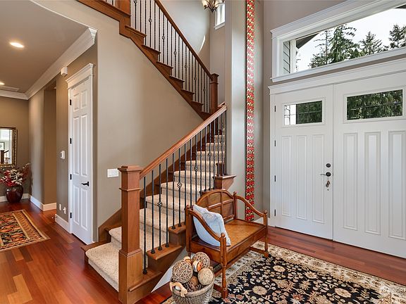 True gem! Beautiful and well-appointed Christenson Home built with elegant features such as crown molding, Brazilian cherry wood floors and coffered ceilings. The gourmet kitchen features Viking appliances, granite counters ,wet bar & walk-in pantry-delightful for any chef. Amazing views of the islands and San Juan ferry, especially from living room and 2nd great room. The layout, with formal and informal spaces, is ideal for both entertaining and everyday living. Second-level covered veranda to enjoy morning coffee or afternoon tea. The primary bedroom on the main level leads out to patio. Oversized garage provides ample space for hobbies. Steps away from Anacortes Community Forest Lands & local trail head to Cranberry Lake.
