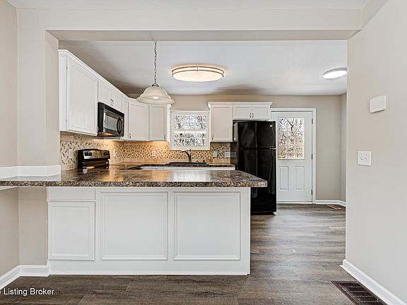 What a great place for a great price in convenient Jeffersontown! This home has just been freshened up with new LVP flooring in living room and kitchen and new carpet in the bedrooms. The eat-in kitchen has white cabinetry and has been updated with newer countertops, tile backsplash and nickel fixtures. The bathroom has also been updated with newer vanity, lighting, mirror and tile flooring and tub surround. The master bedroom is on the first floor plus 2 additional bedrooms and office on the 2nd floor. The unfinished basement has lots of space for storage and doing laundry. Outside this secluded setting is a large front porch with hot tub and deck out back. Great value here in move-in condition so schedule your private showing today - you'll be glad you did!